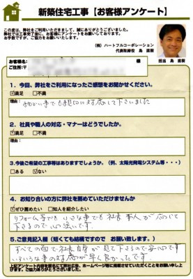 神戸市垂水区・須磨区・西区・明石市東部はお任せ下さい > お客様の声一覧 > S様